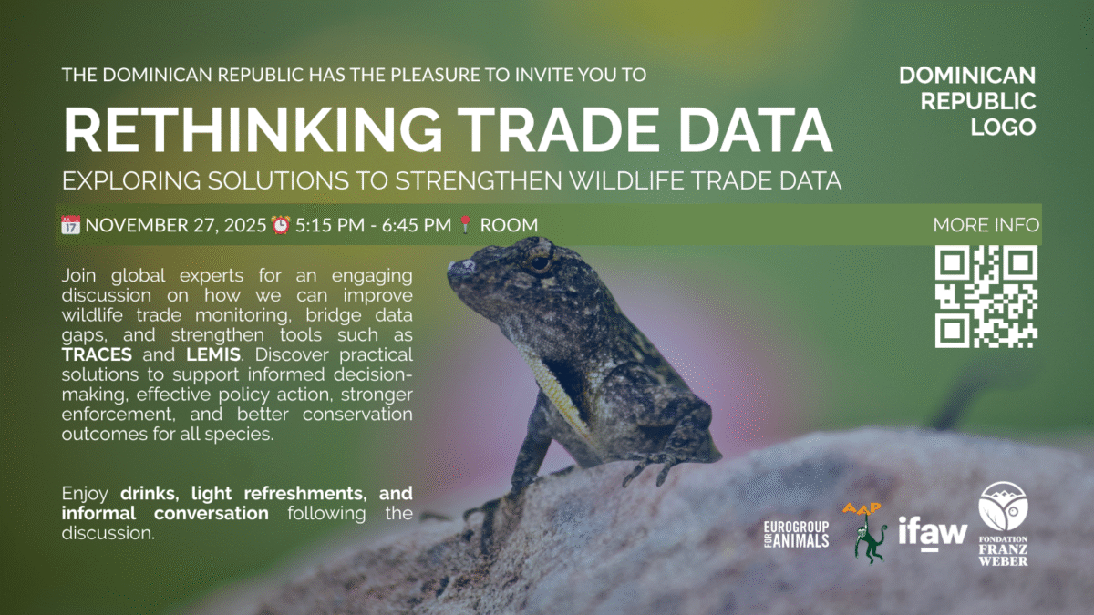 The next CITES Conference of the Parties (CoP20) will take place from the end of November to early December 2025 in Uzbekistan. This important event brings together government representatives, NGOs, and other stakeholders from around the world to discuss wildlife trade and conservation.
