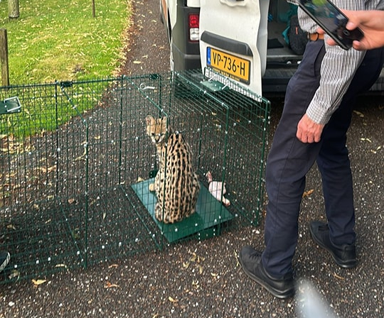 AAP has rescued the serval that escaped during the night of Friday 19 July in Lexmond, Utrecht. The serval had only just arrived at its new home, but after an earlier scratching incident, the owner did not want the feline back after it escaped.