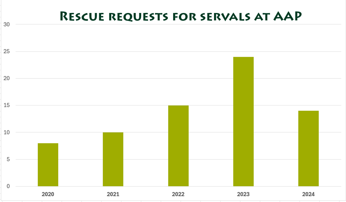 In Europe, we are seeing this African predator pop up more and more, both in the news and at AAP. Never before have we received so many requests to take in servals and other wild cats as we have in the past few years.